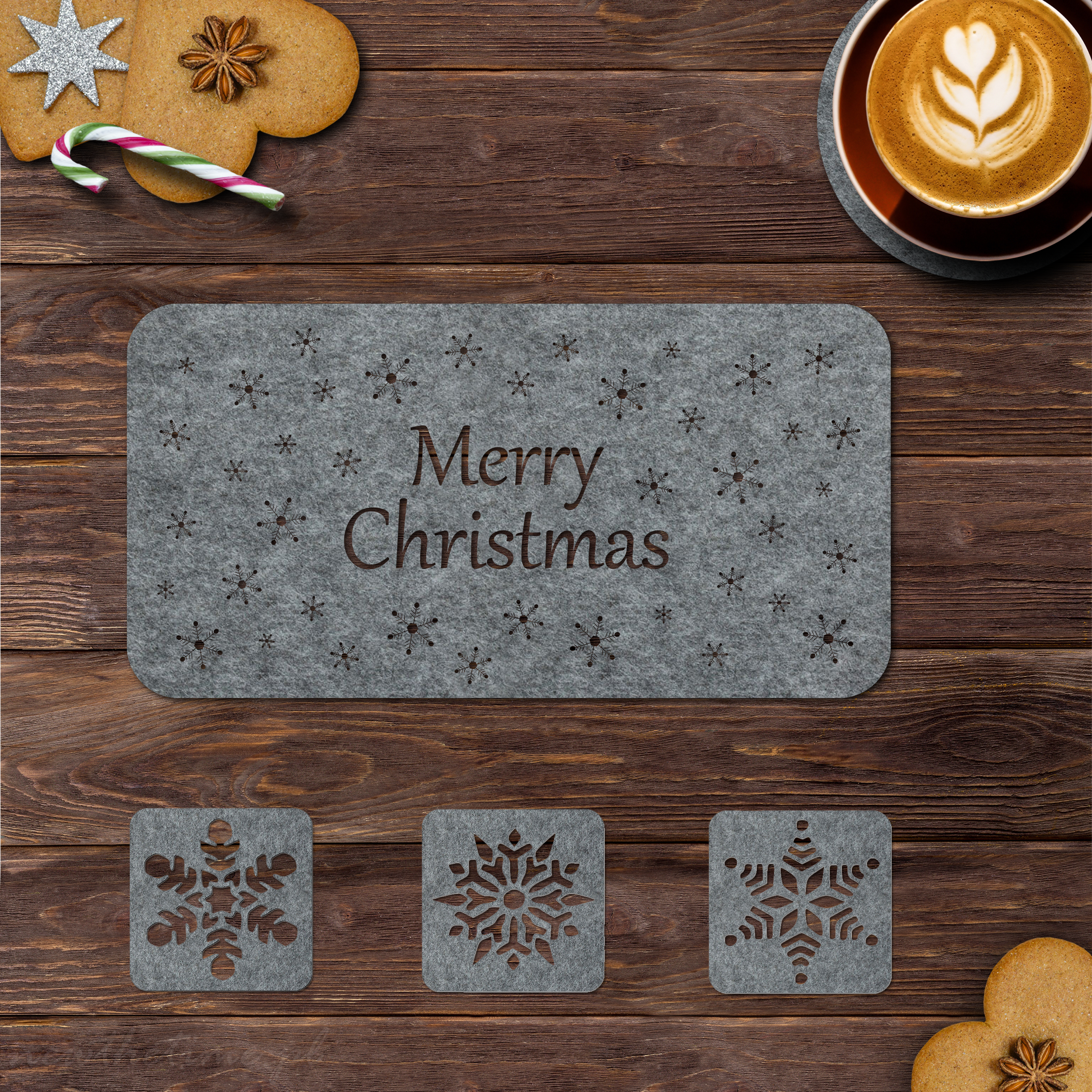 WZÓR: Merry Christmas + 3 podkładki