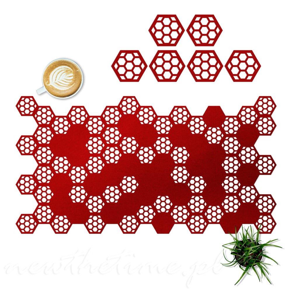 Bieżnik filcowy Hex - czerwony