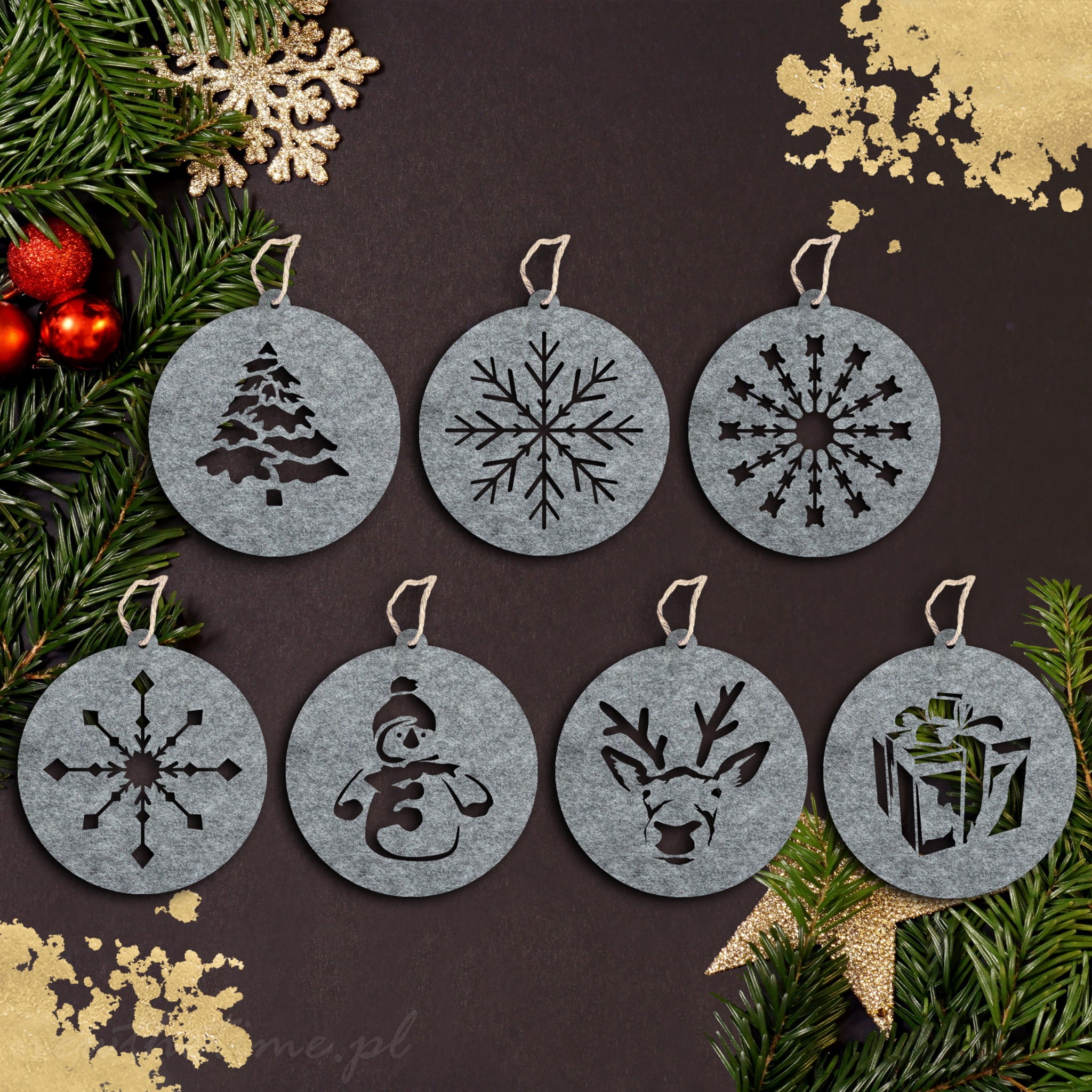 Bombki z filcu - zestaw SZARY
