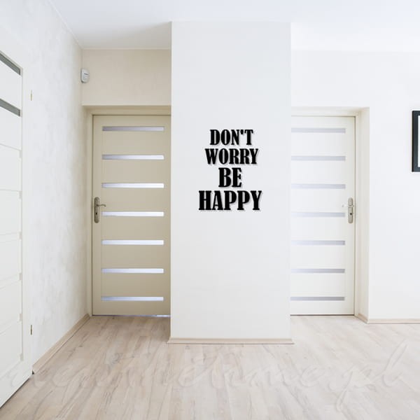 Napis ścienny Don`t worry be happy - optymistyczny napis ścienny, którego myślą przewodnią jest czerpanie radości z życia.