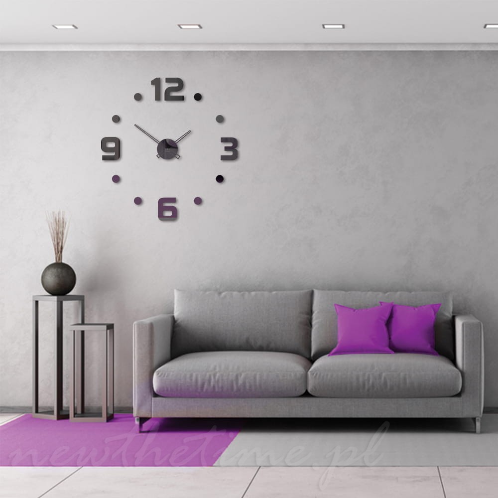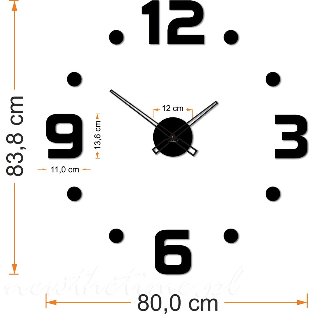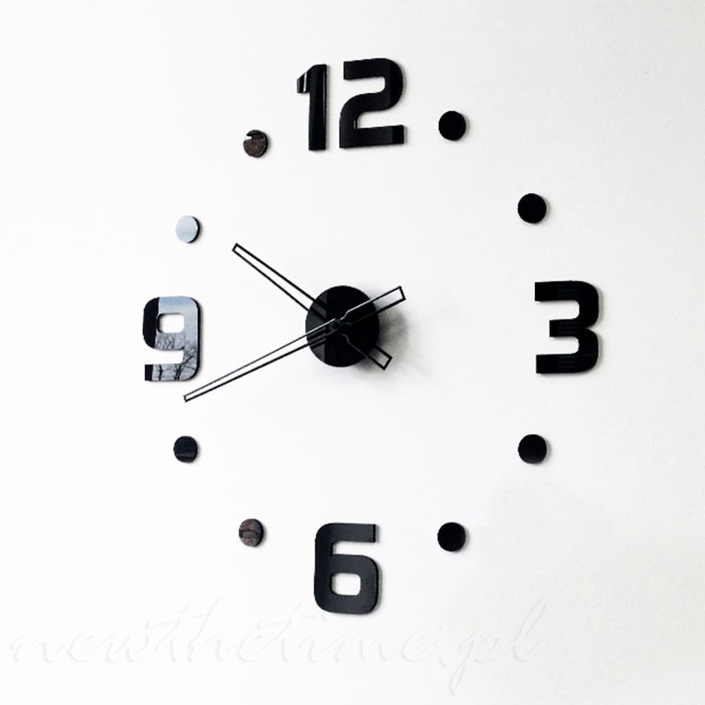 Duży zegar ścienny Dot - z kropkami, czarny, duży rozmiar 84 cm!