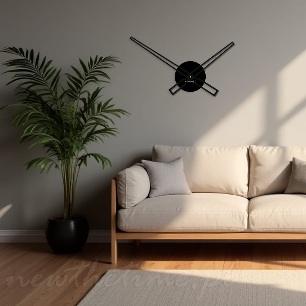 - czarne duże piękne wskazówki, precyzyjnie dobrane do wielkości tarczy, tworzą wyrazisty kontrast i podkreślają nowoczesny charakter zegara.