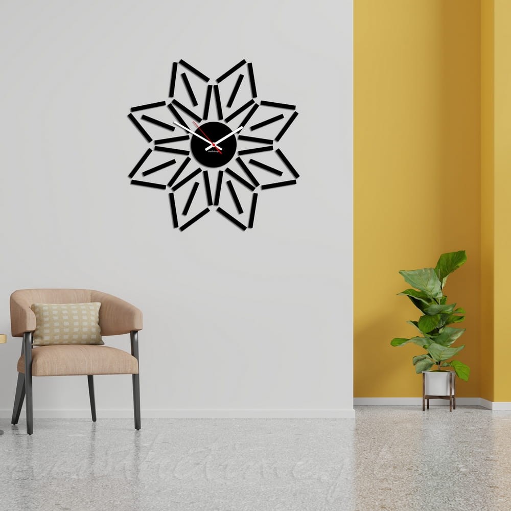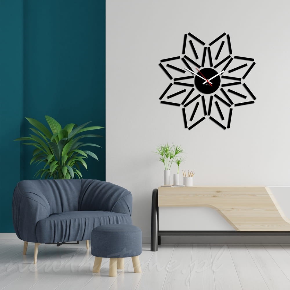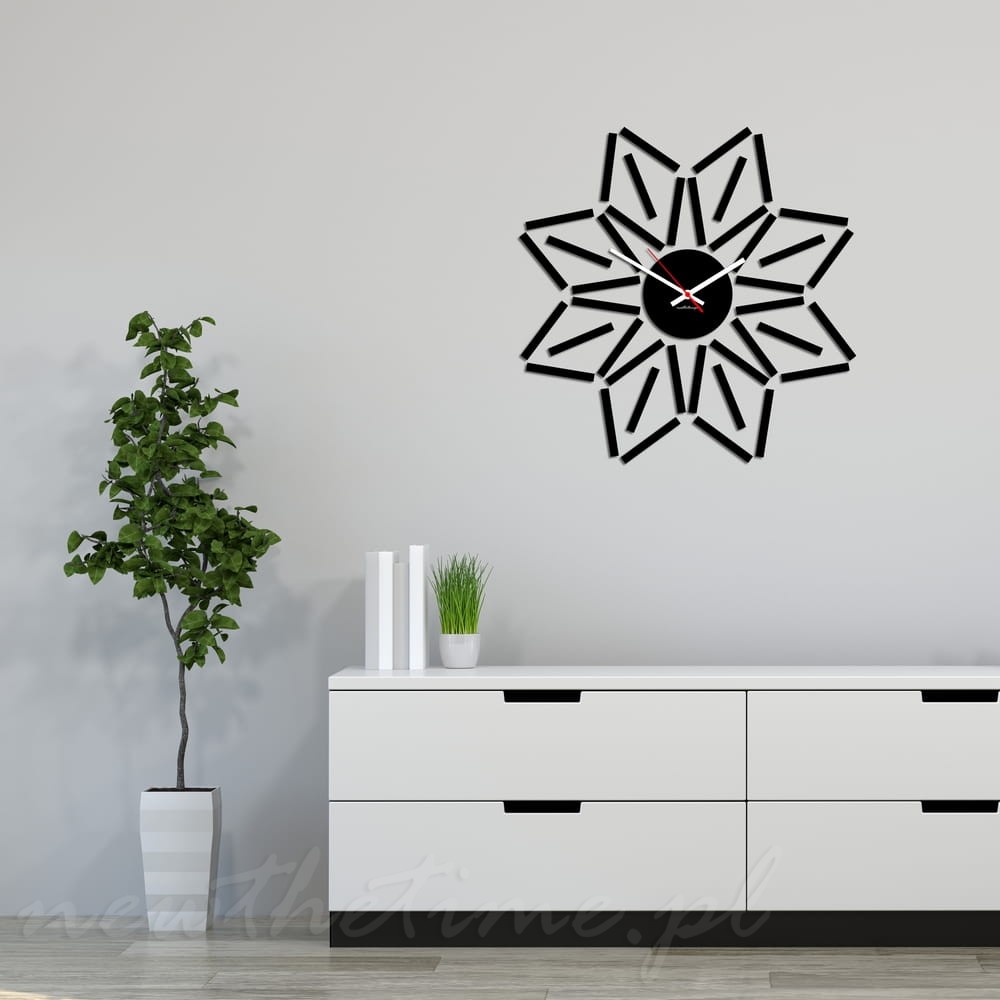 Naklejany zegar ścienny Dashes - czarny, kreski 45 cm