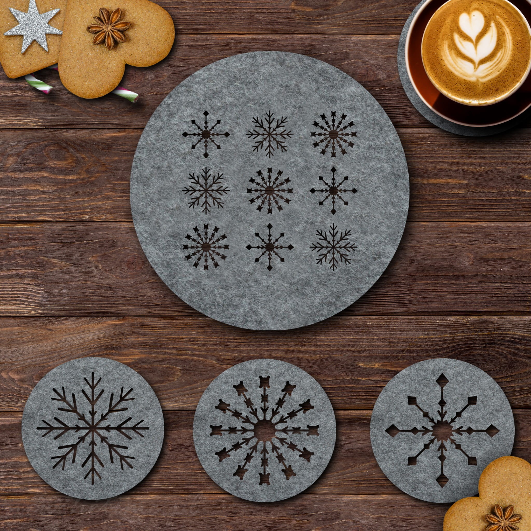 Świąteczny ZESTAW na stół Śnieżynki SZARY