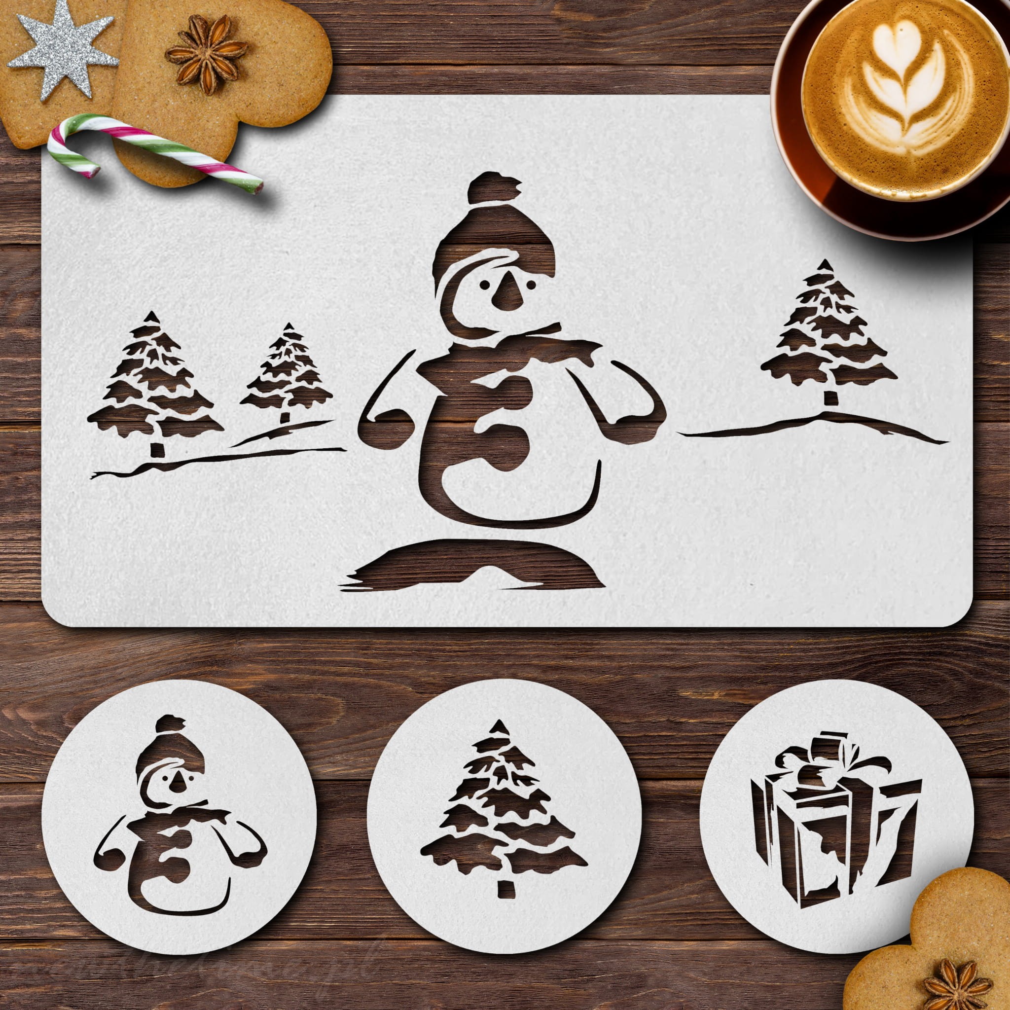 WZÓR: Bałwanek + 3 podkładki pod kubek