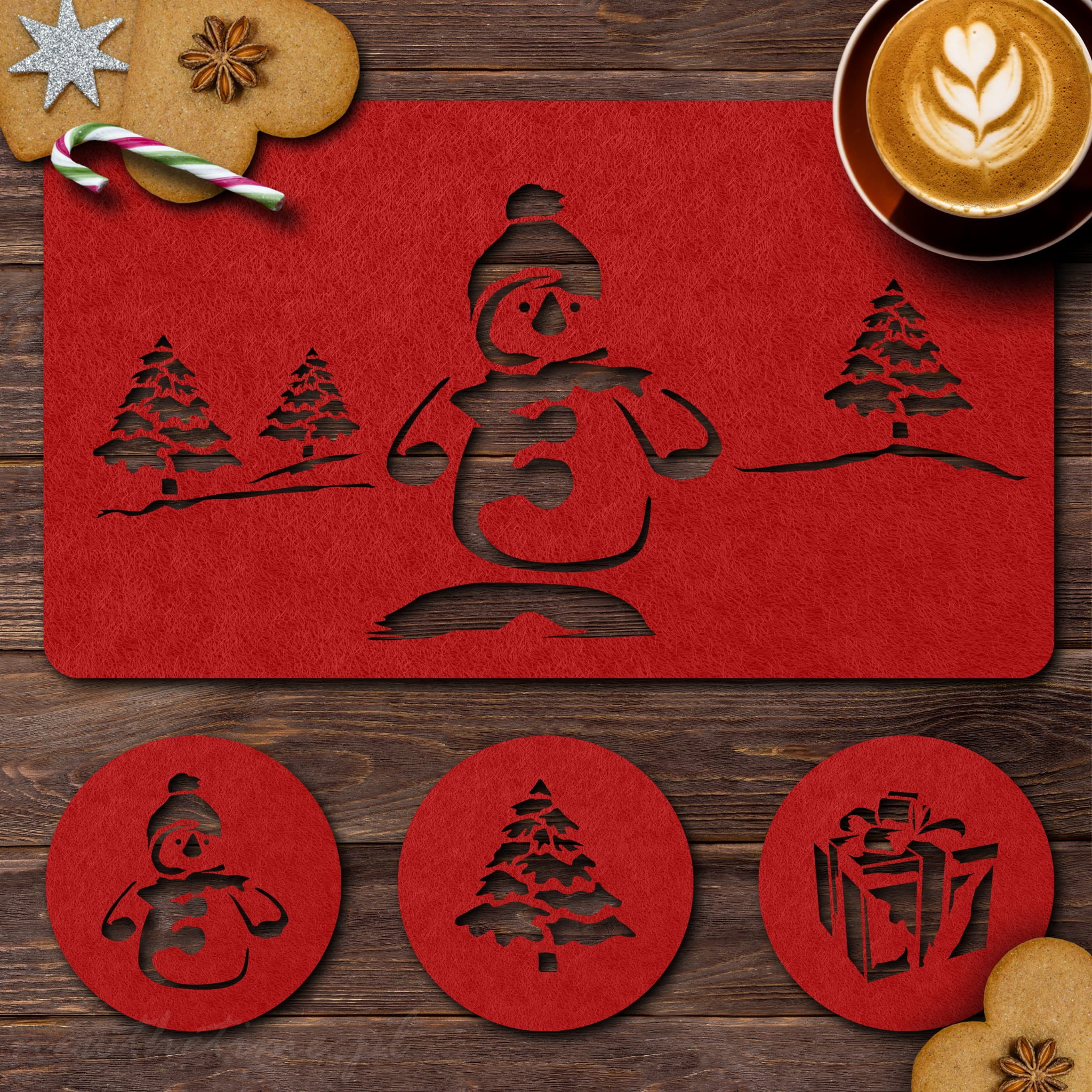 WZÓR: Bałwanek + 3 podkładki pod kubek