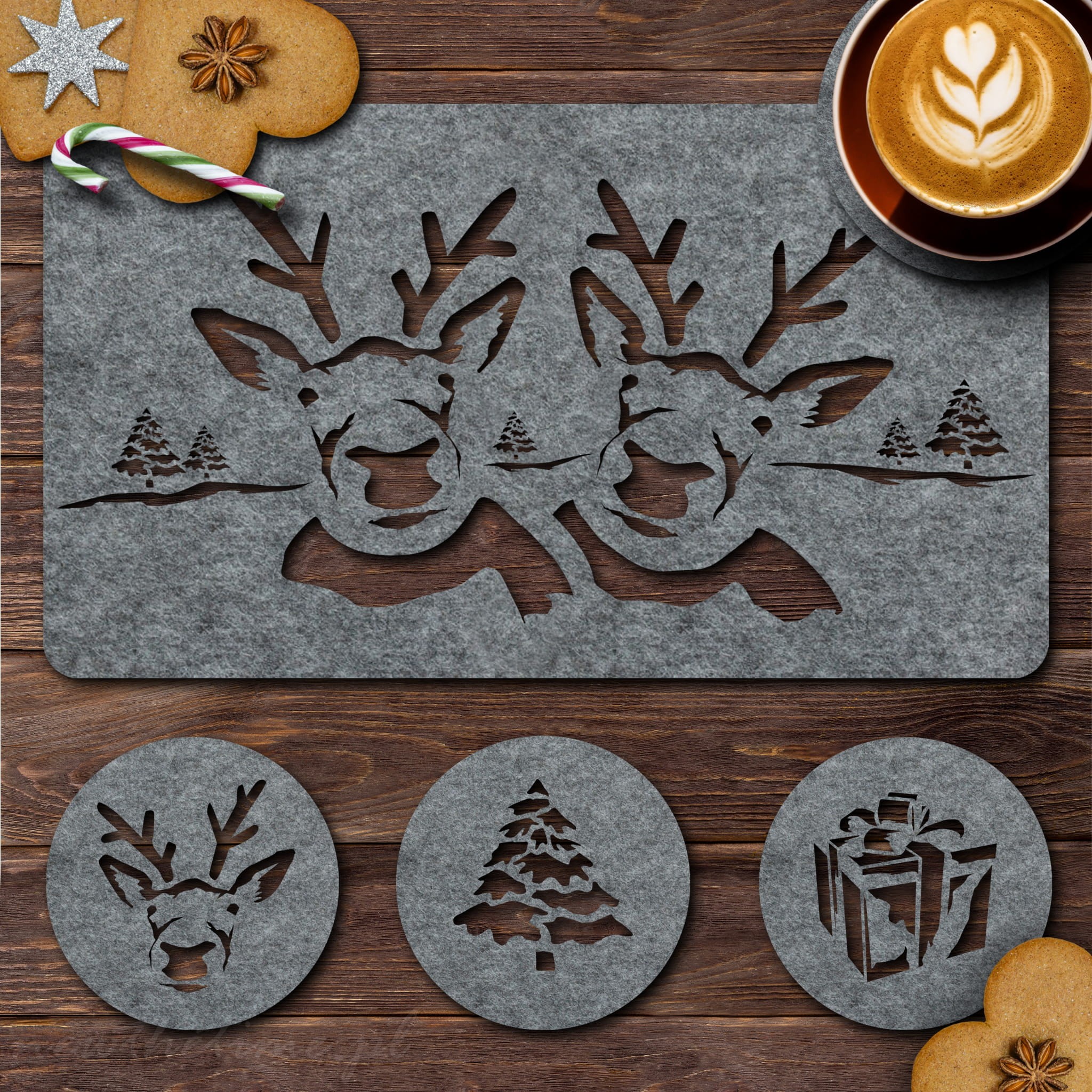 WZÓR: RENIFERY + 3 podkładki pod kubek