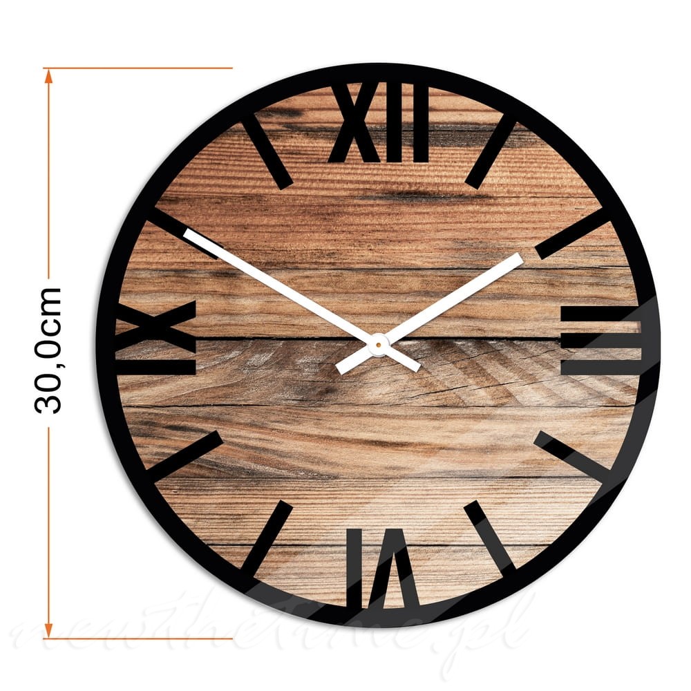 Szklany zegar na ścianę Modern Wood X14 - motyw drewna 30cm