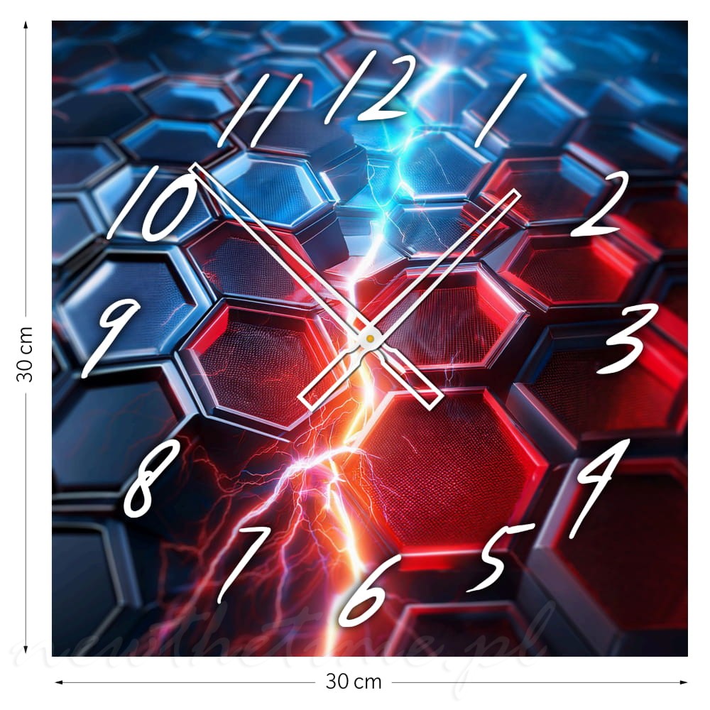 Szklany zegar na ścianę - motyw energii Electric3 50 cm