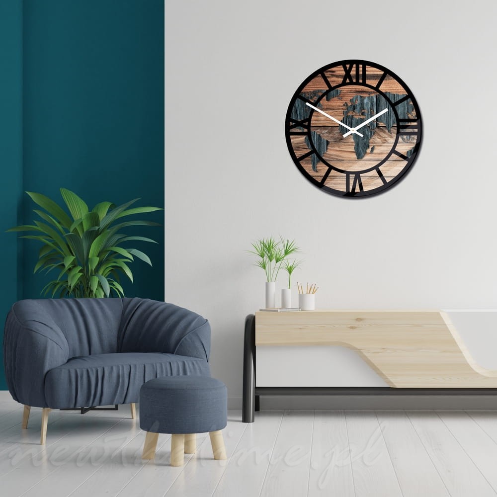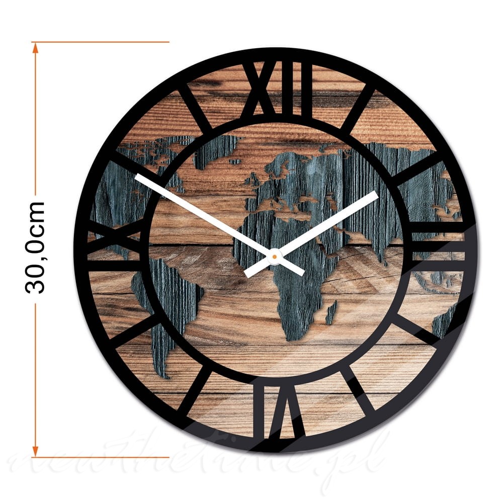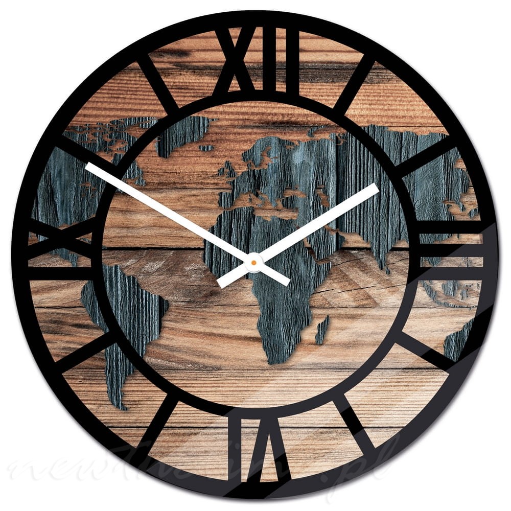 Szklany zegar ścienny Modern Wood X18 - podróżny, mapa świata, 30cm