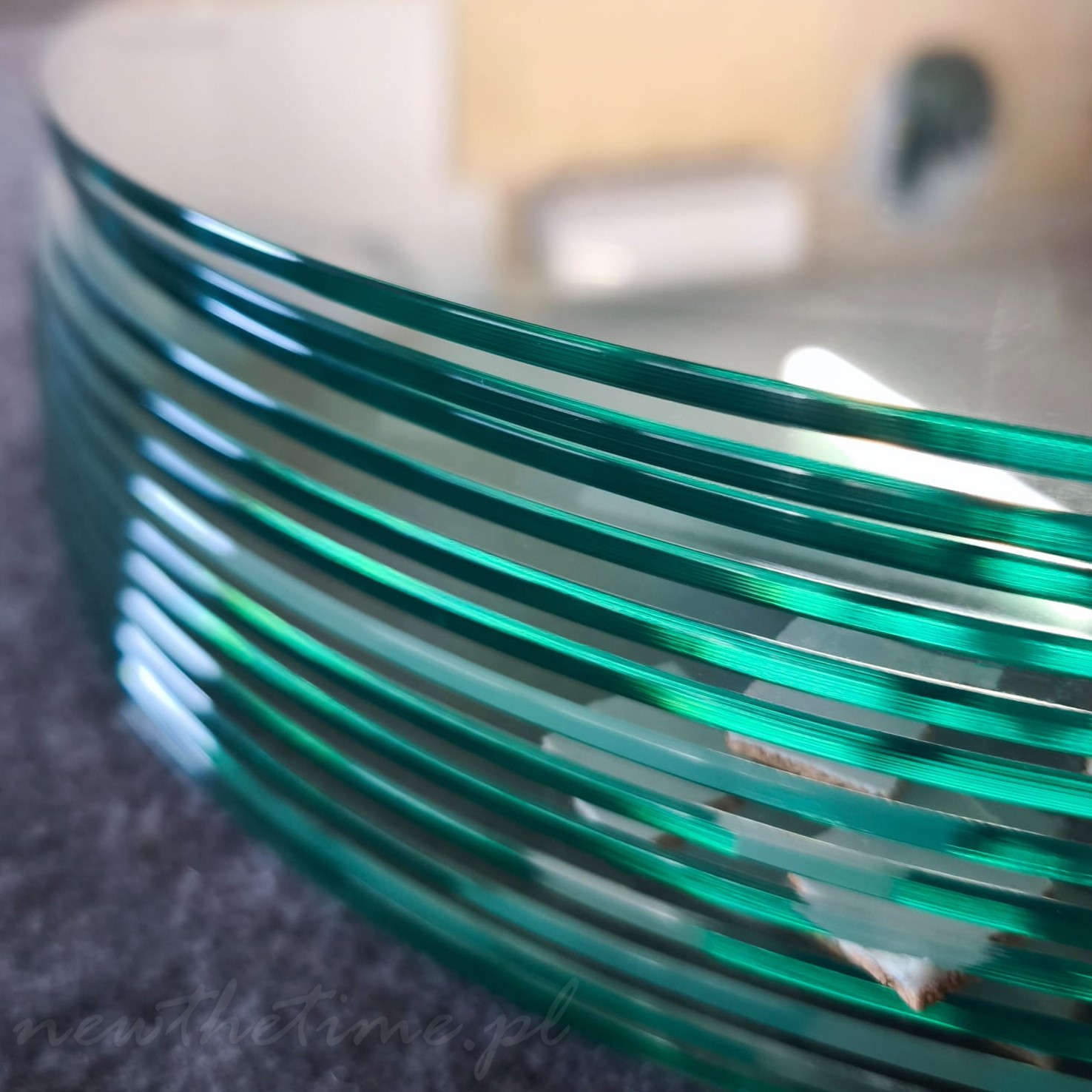 Krawędzie szkła zostały precyzyjnie szlifowane i polerowane w szlif trapezowy, co zapewnia estetyczne wykończenie, gładkość oraz bezpieczeństwo w codziennym użytkowaniu. Delikatnie załamujące światło krawędzie podkreślają jakość wykonania i nadają nowoczesny wygląd.