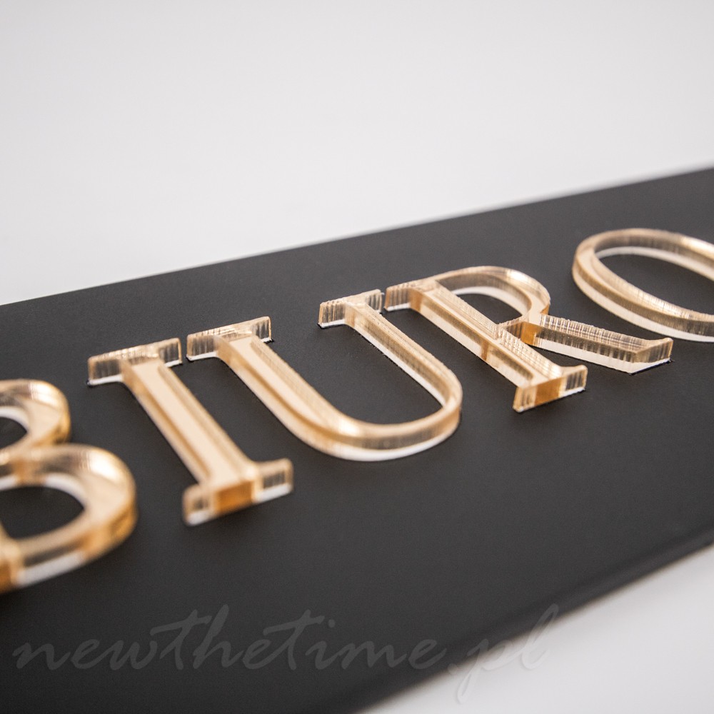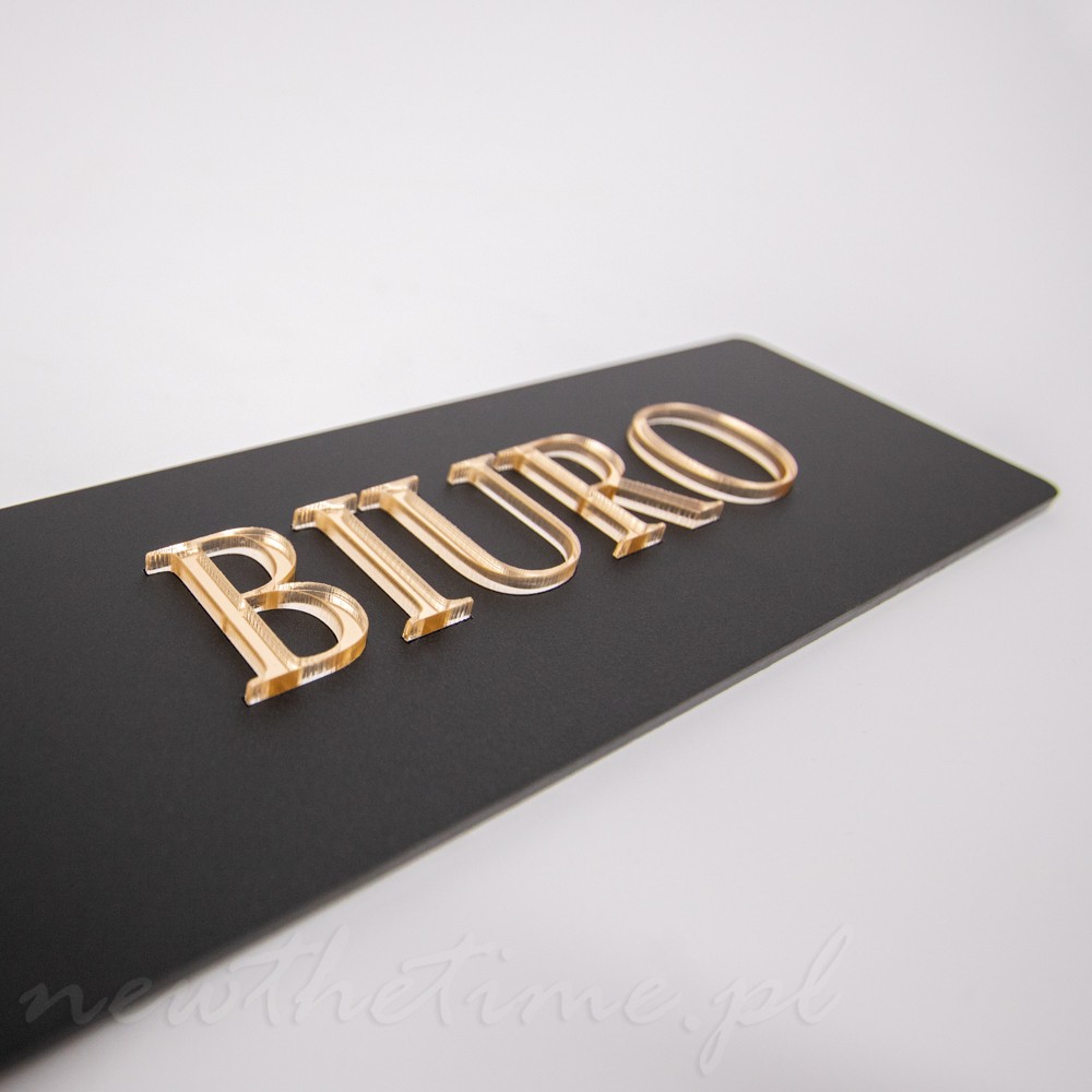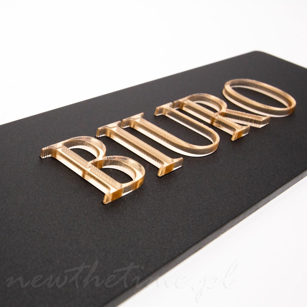 Tabliczka BIURO plexi matowa złoty napis szkło akrylowe oznaczenie drzwi