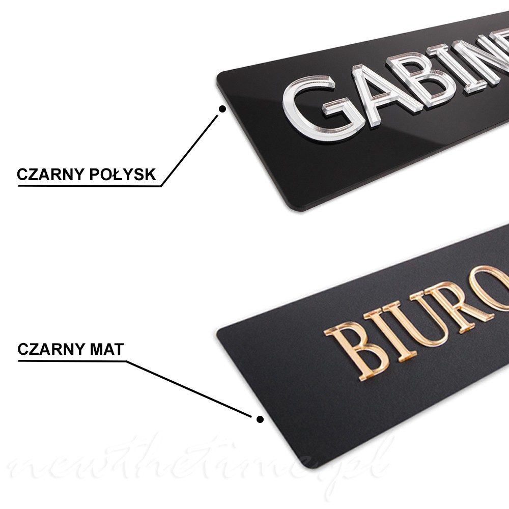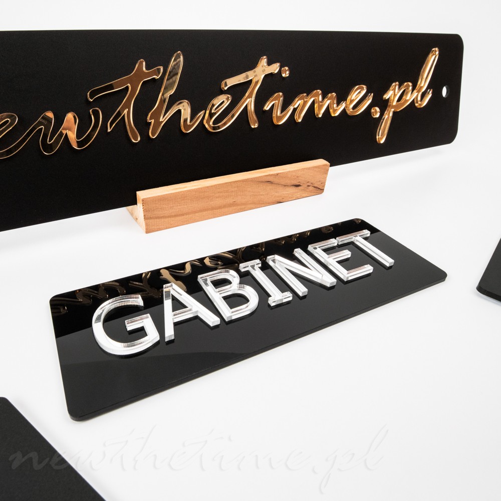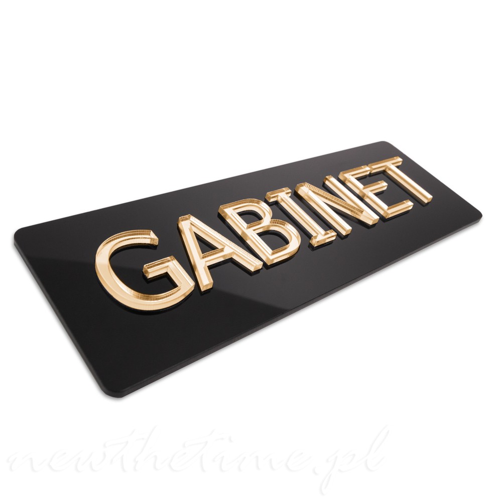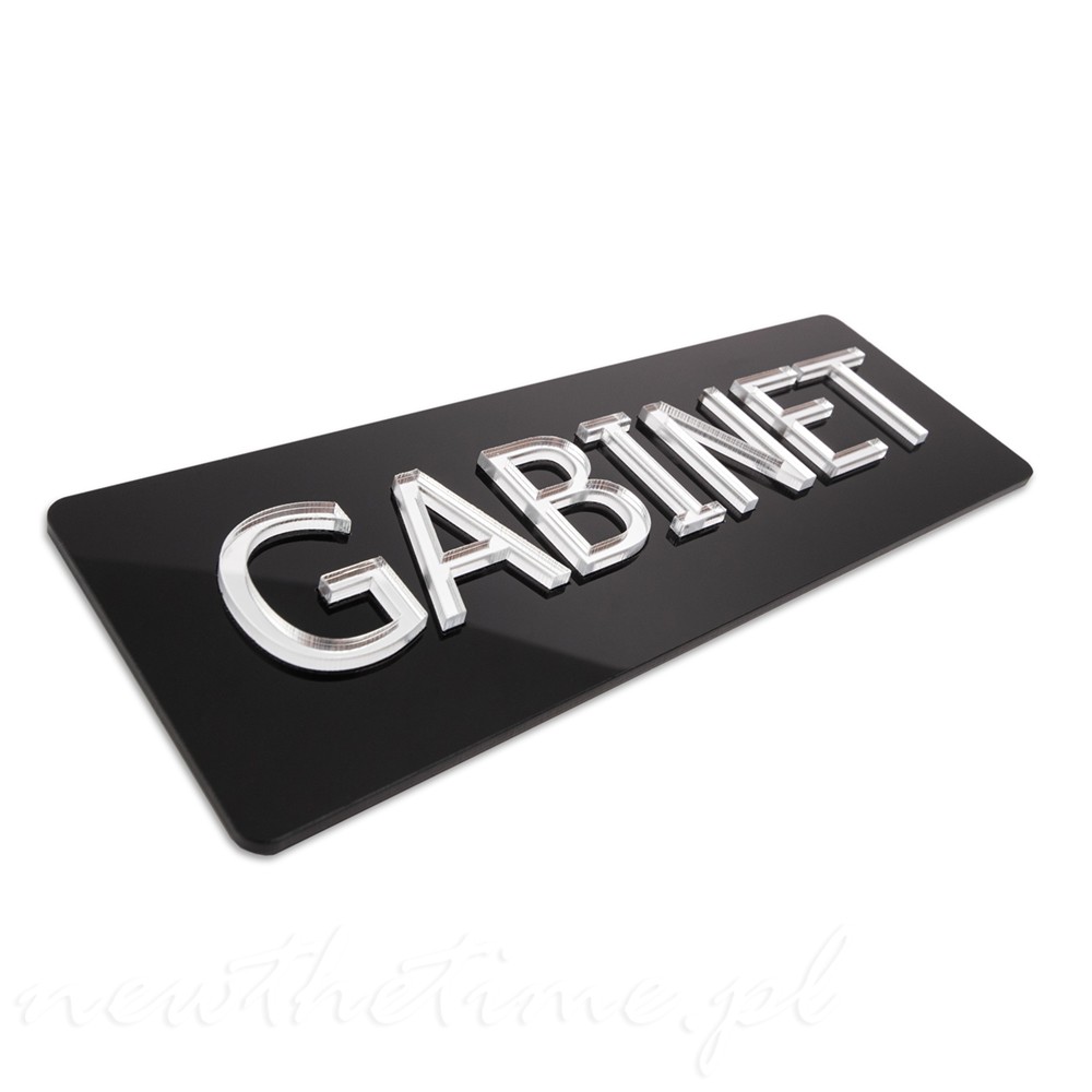 Tabliczka GABINET - czarny połysk, elegancka, lustrzany napis