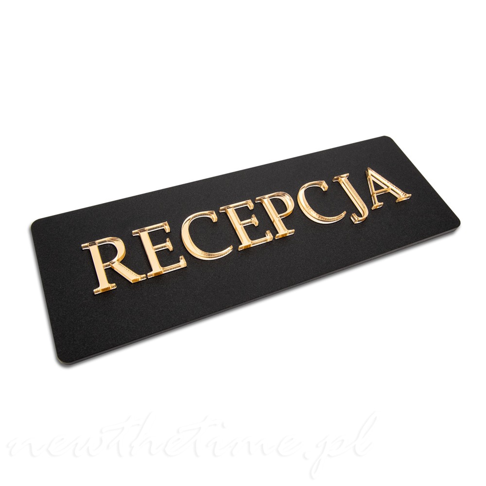 Tabliczka czarna z napisem RECEPCJA - matowa, złoty napis