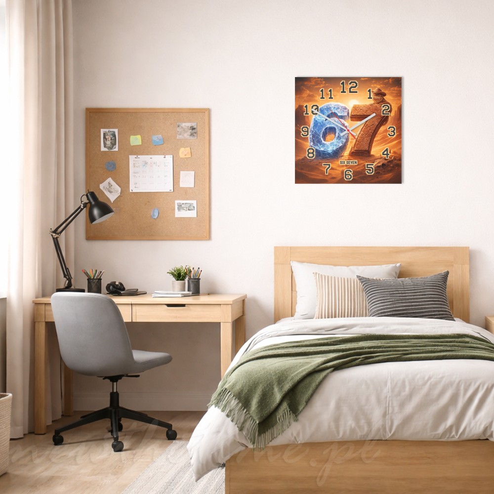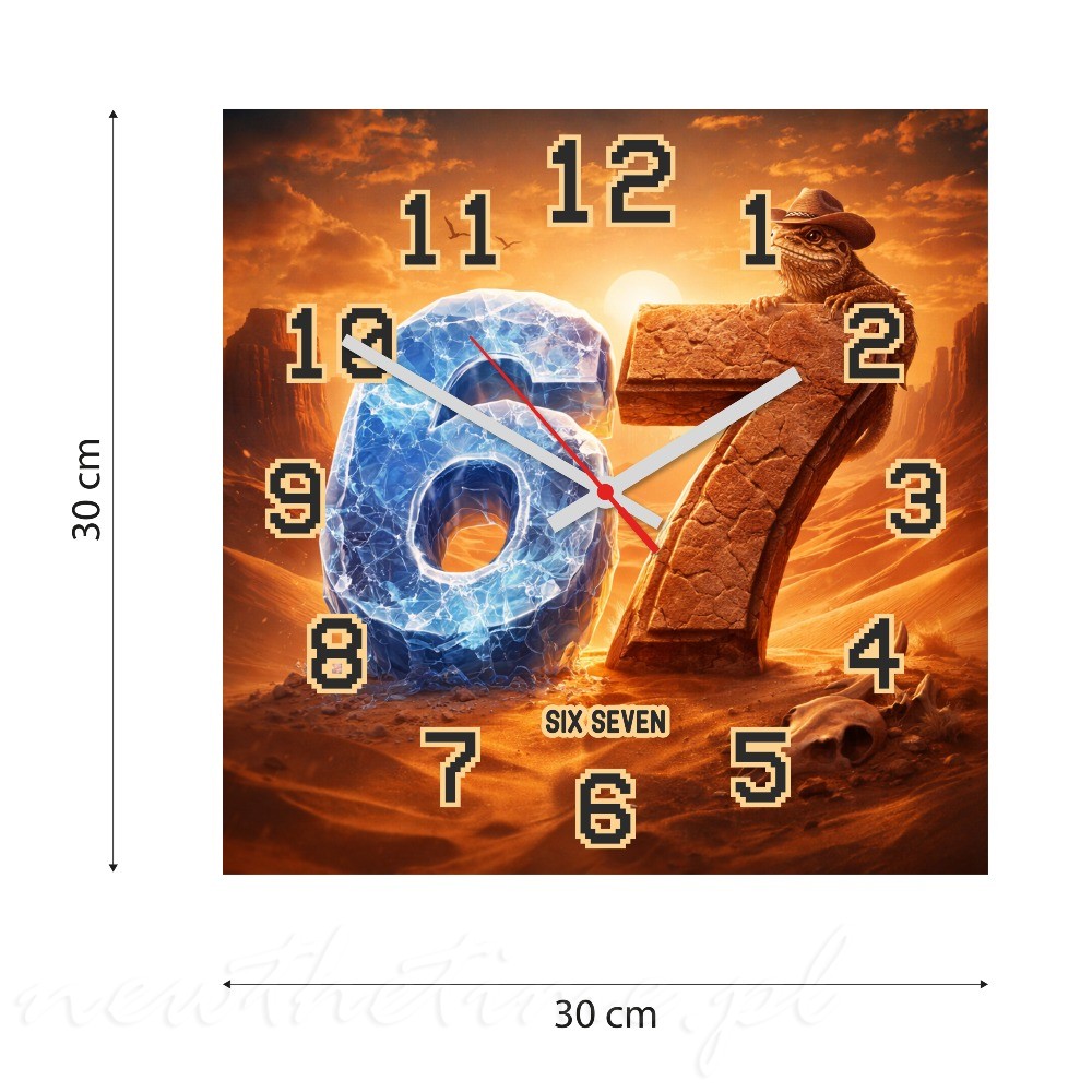 Zegar ścienny 67 pustynia kamień 30x30 cm to nowoczesny zegar wykonany z lekkiej i trwałej płyty PVC 3 mm, idealnej do zastosowań dekoracyjnych.