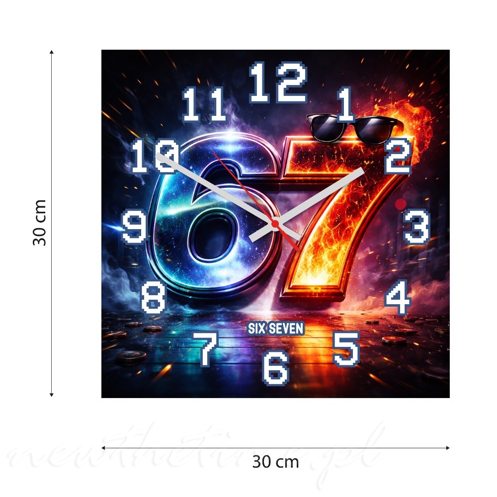 Zegar ścienny 67 ogień i lód 30x30 cm to nowoczesny zegar młodzieżowy wykonany z trwałej płyty PVC o grubości 3 mm, która jest lekka, odporna i idealna do dekoracji ściennych.