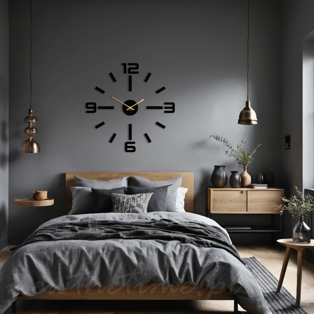 Złote wskazówki nadają całości eleganckiego charakteru i tworzą subtelny kontrast z tarczą. Dzięki temu zegar doskonale sprawdzi się jako dekoracja ścienna w nowoczesnych wnętrzach – zarówno w salonie, jak i biurze czy sypialni.