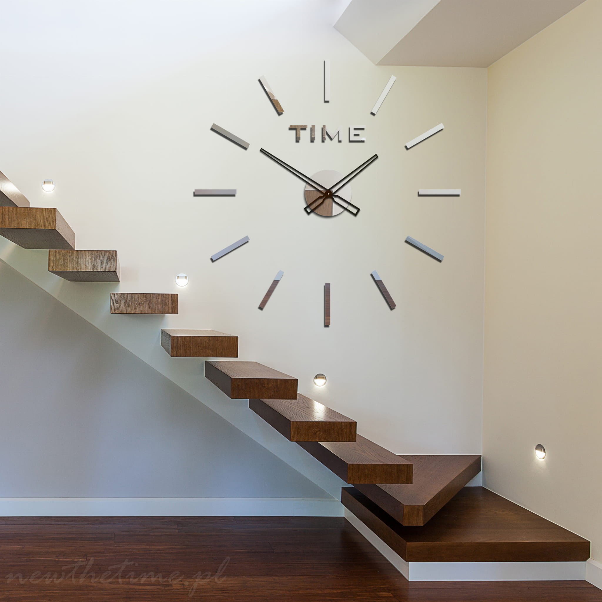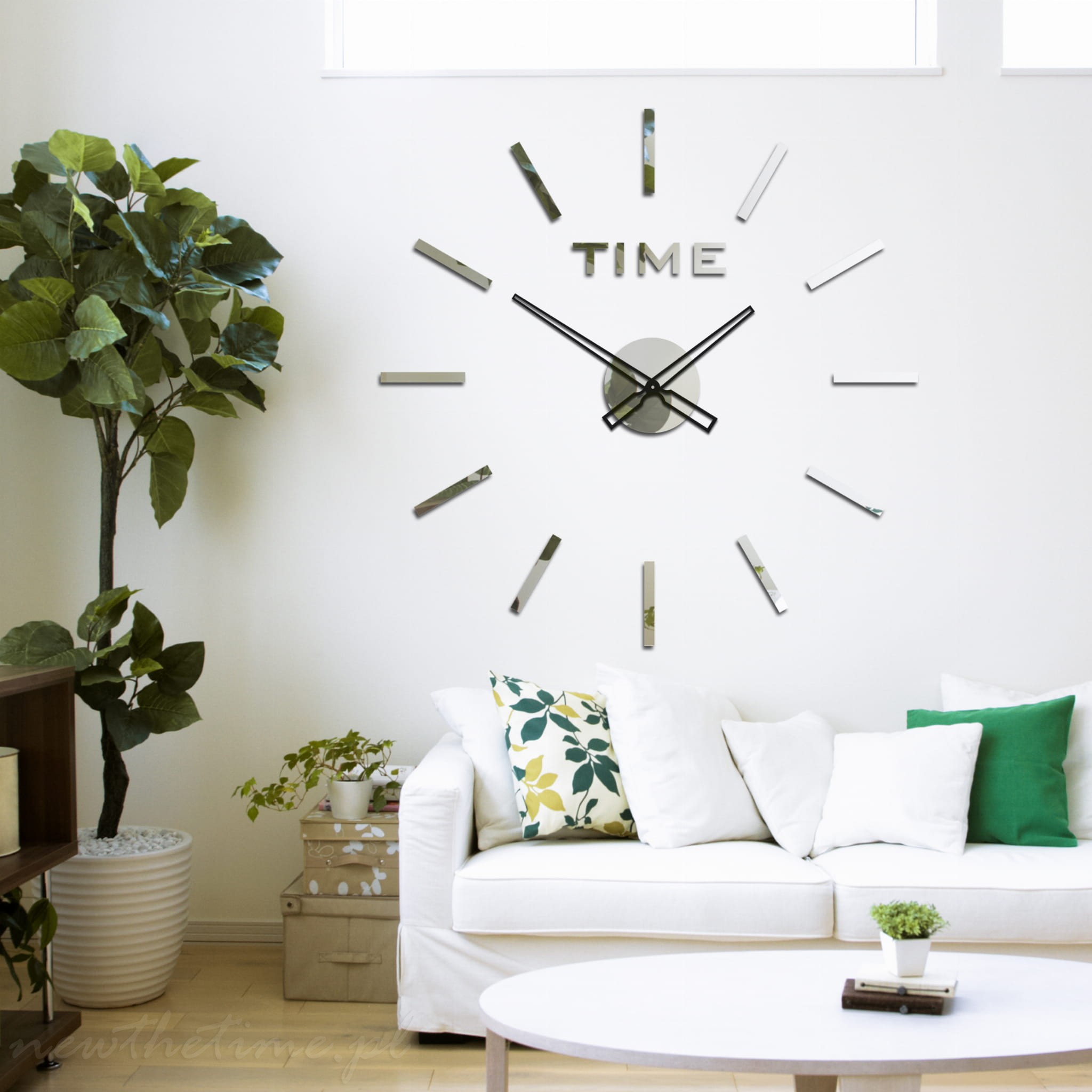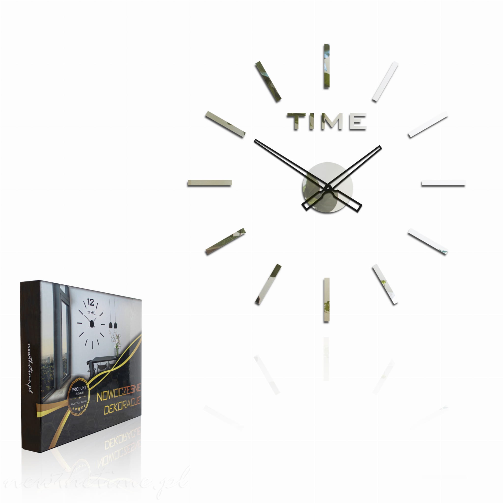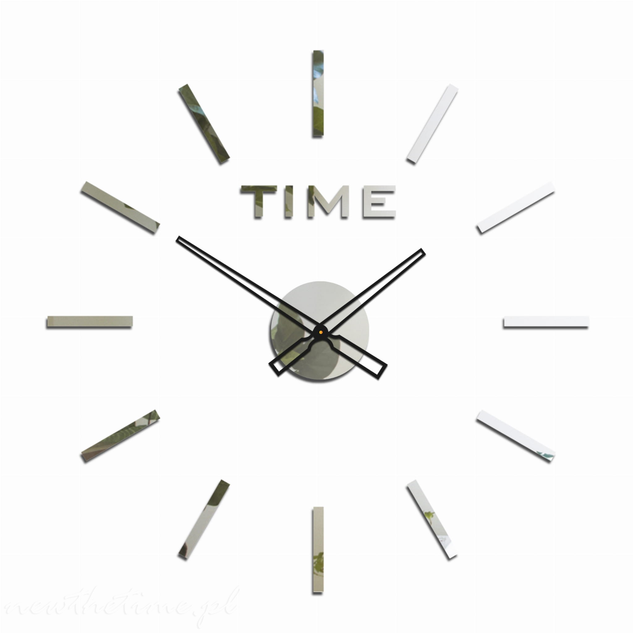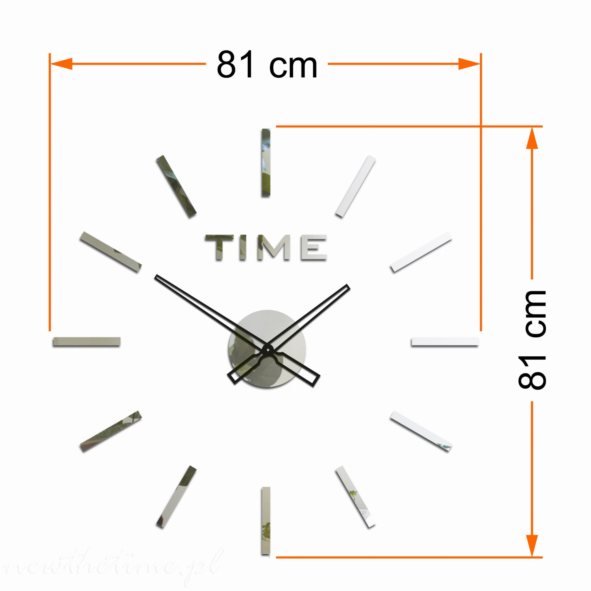 Zegar ścienny Linea V2 - kreski, napis time, lustrzany 81 cm