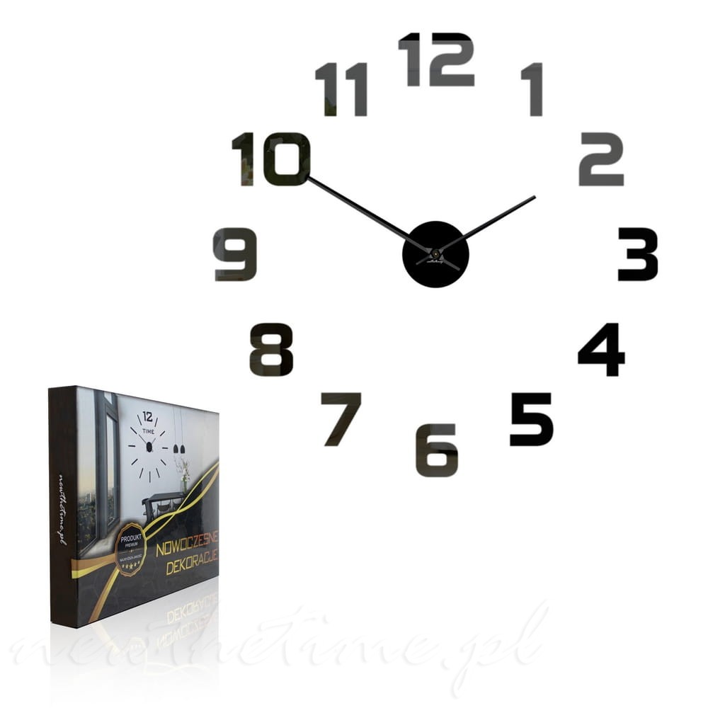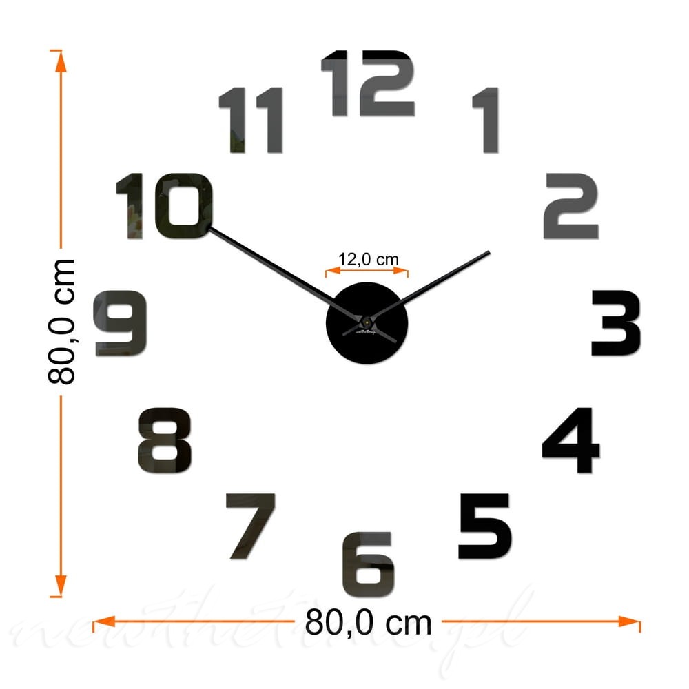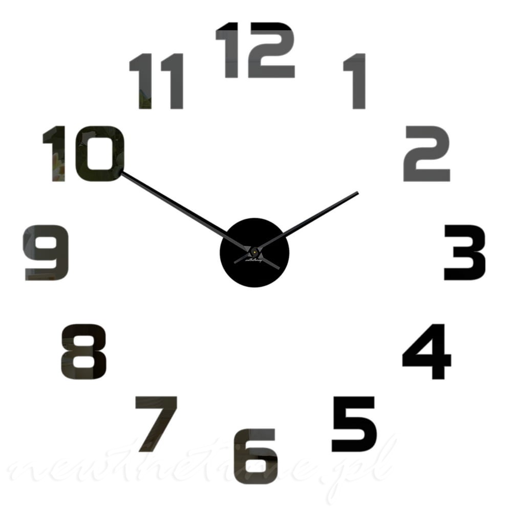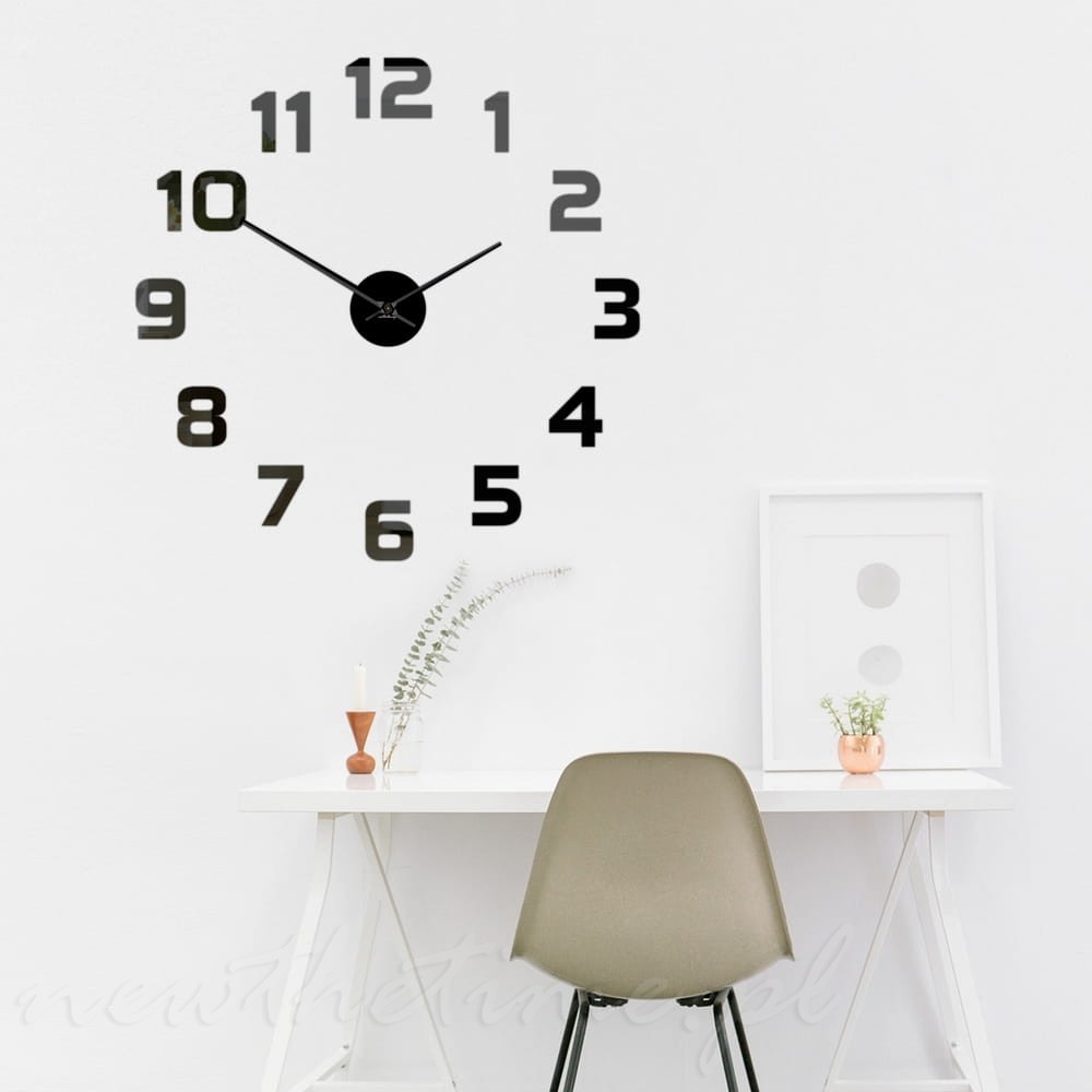 Zegar na ścianę Samfire składający się z czarnych cyfr jednakowej wielkości.