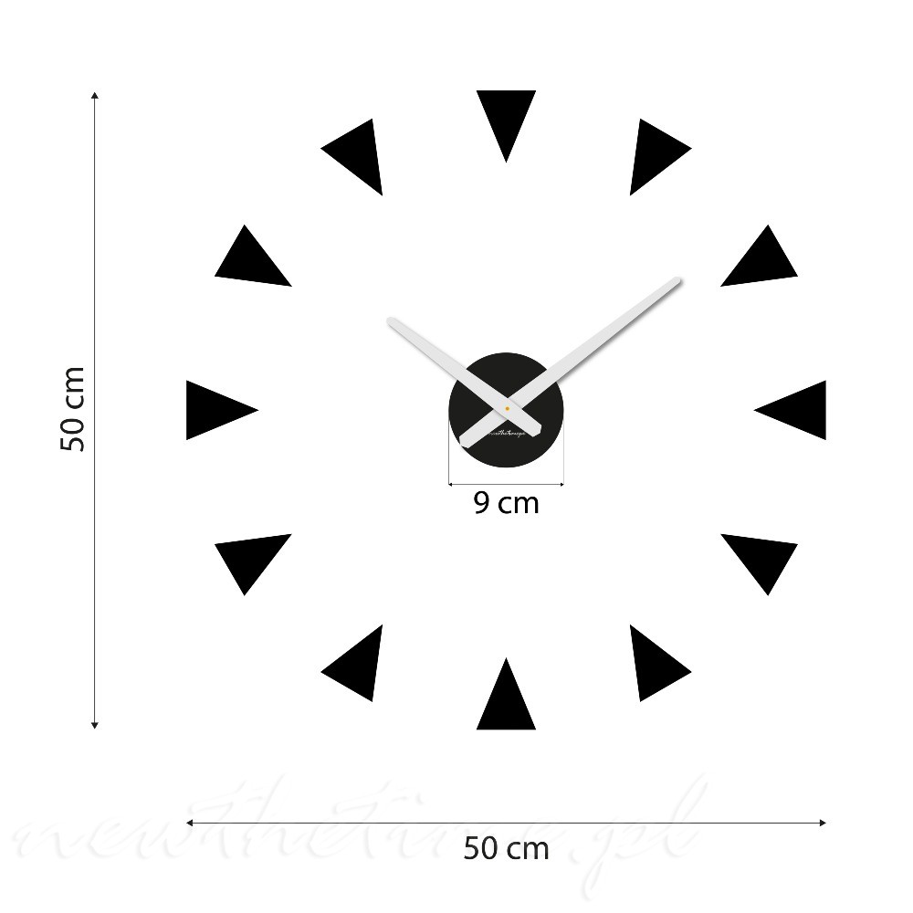 Zegar ścienny Trios to nowoczesna dekoracja ścienna inspirowana geometrycznym designem. Unikalne indeksy w kształcie trójkątów tworzą dynamiczną kompozycję, która przyciąga uwagę i nadaje wnętrzu charakteru.