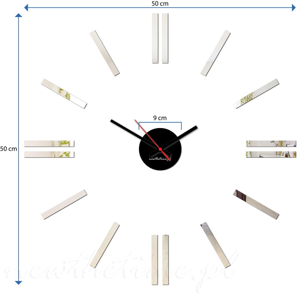 Zegar ścienny Waste - lustrzany, z kreskami, 50 cm