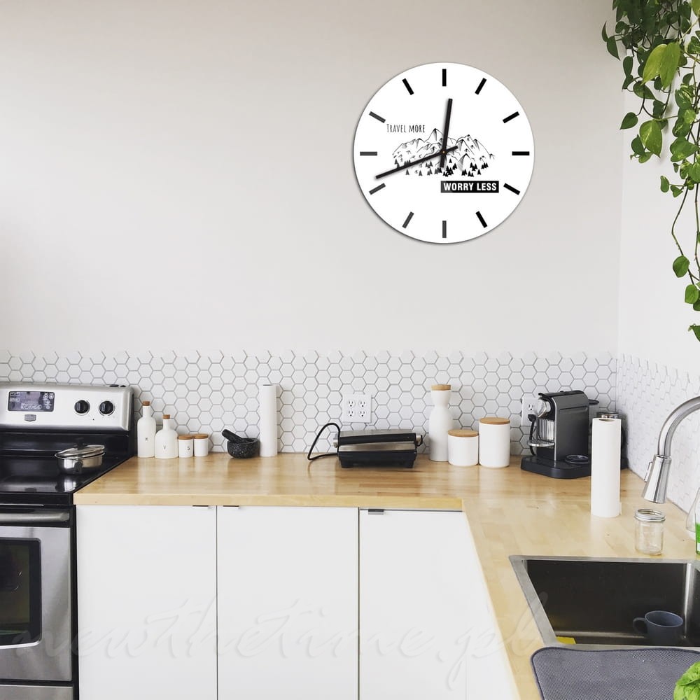 Nowoczesny zegar ścienny Travel More, wykonany z wysokiej jakości materiałów z profesjonalnego nadrukiem UV. Motyw gór być może pozwoli Ci na moment oderwać się od codziennego pędu!