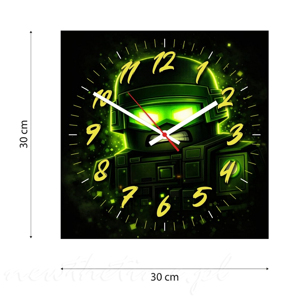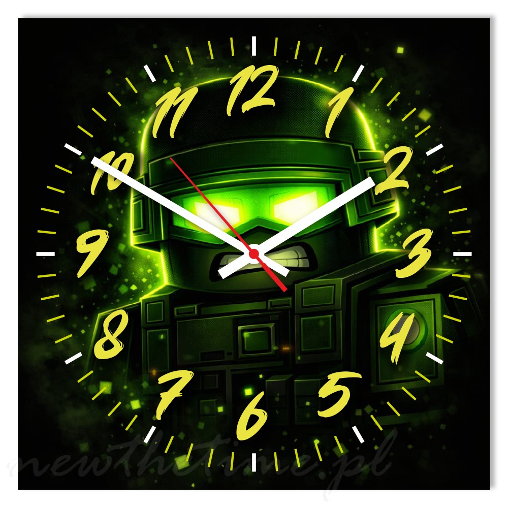 Zegar ścienny żołnierz gaming zielony 30x30 cm to nowoczesny zegar młodzieżowy wykonany z trwałej płyty PVC o grubości 3 mm.