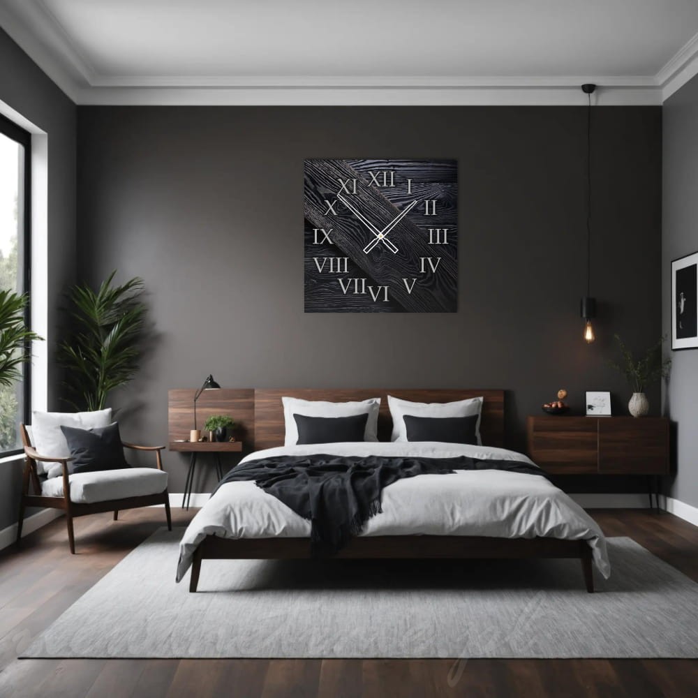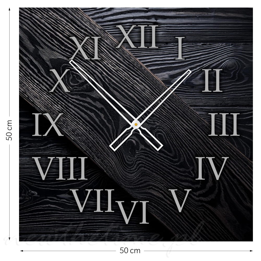 Połączenie nowoczesnego materiału z klasycznym motywem drewna tworzy wyjątkowy efekt, który wpasuje się zarówno w minimalistyczne, jak i bardziej tradycyjne wnętrza. Grafika jest nie tylko estetyczna, ale także trwała, dzięki czemu zegar przez lata będzie ozdobą Twojego domu.