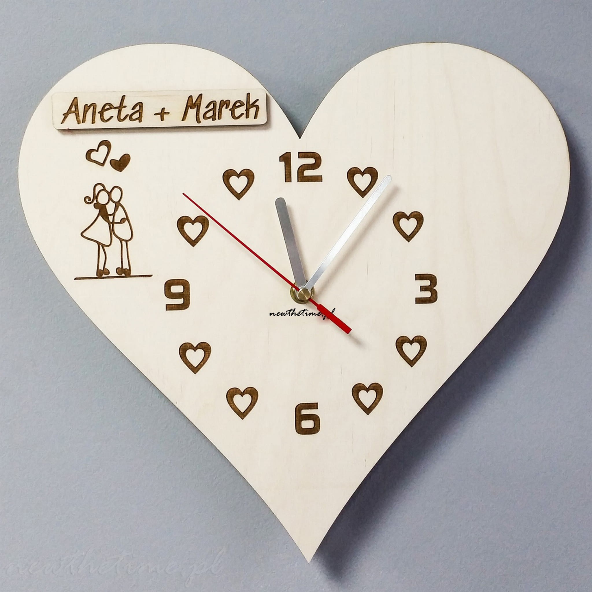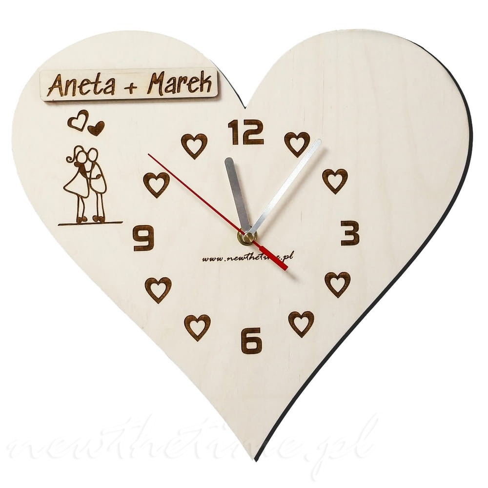 Zegar ścienny SERCE - drewniany, z grawerem, w kształcie serca